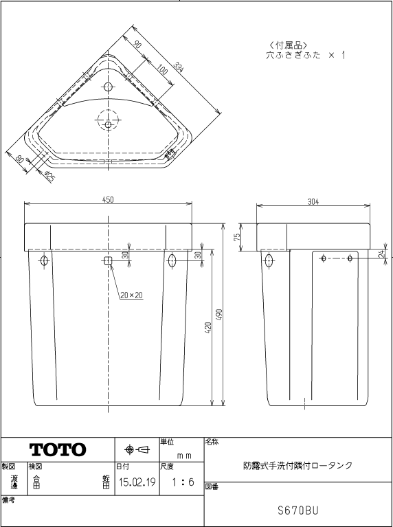 TOTO 和風・洋風大便器用防露式隅付ロータンク,手洗有りセット,32ミリ洗浄管用(陶器・内部金具・固定金具付)S670BU+TS751ZSRR32