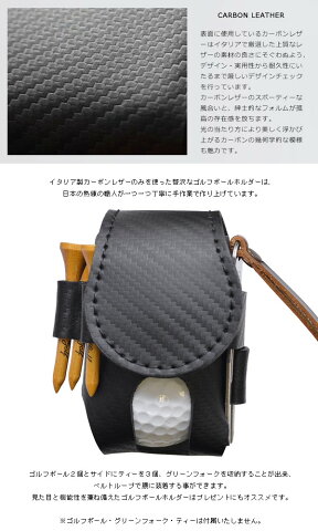 ■品名:ゴルフボール ホルダー カーボンモデル ■素材:イタリアン製カーボンレザー ■サイズ:H9.5×W4×D6cm ■カラー:ブラック ■生産:HANDMADE in JAPAN (日本製) ■注意 ※ゴルフボール・ティー・グリーンフォークは付属致しません。