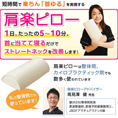 店舗トップへ ◆首こり 首こり解消に![ ネックリフレッシュ ]はコチラから! ◆[ グイ押し ネックストレッチャー ]はコチラから! ◆[ トルマリア ポイントイオン ]はコチラから! 商品名 肩楽ピロー サイズ 高さ6cm×幅2cm8×奥行15cm 素材 本体:ウレタン カバー:綿100% 使用方法 適1.仰向けにまっすぐ寝る。
