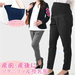 《在庫限り》産前産後に使えるマタニティウェア♪ウエストリブテーパードパンツ(c587907)【Q1】[M/L]妊婦服 産前 妊娠中 春 夏