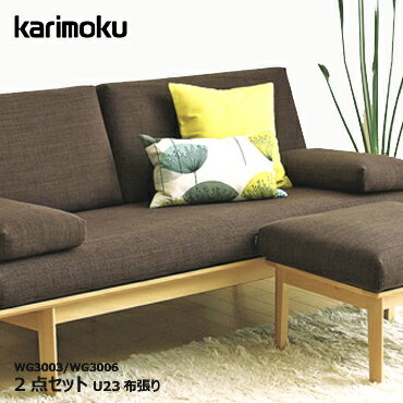 ●父の日企画●KOKOCHIサンキュー企画(6/13-20) カリモク ソファ2点セット【WG3003長椅子×1・WG3006スツール×1 U23布張り】ソファ 木製 レトロ